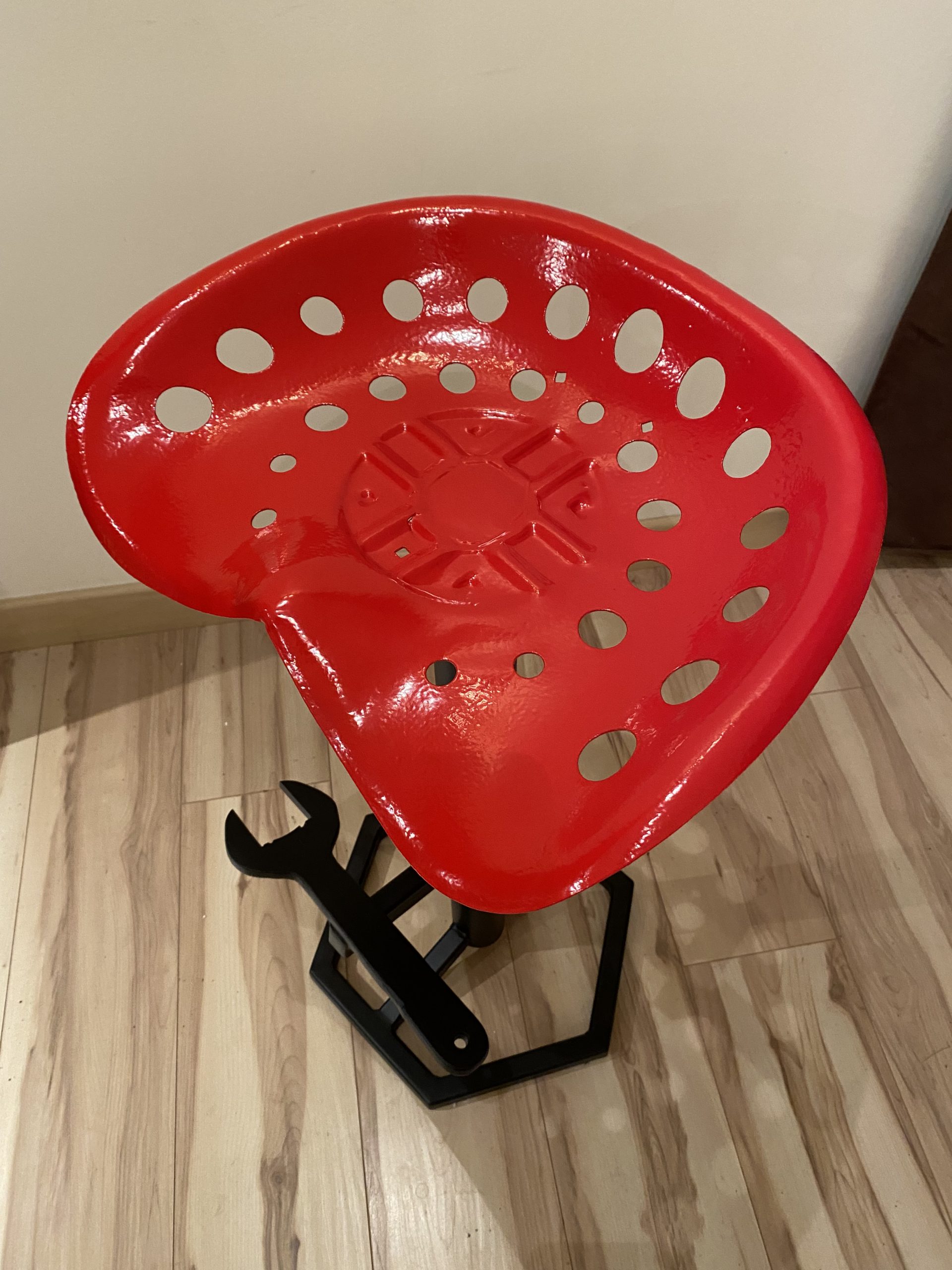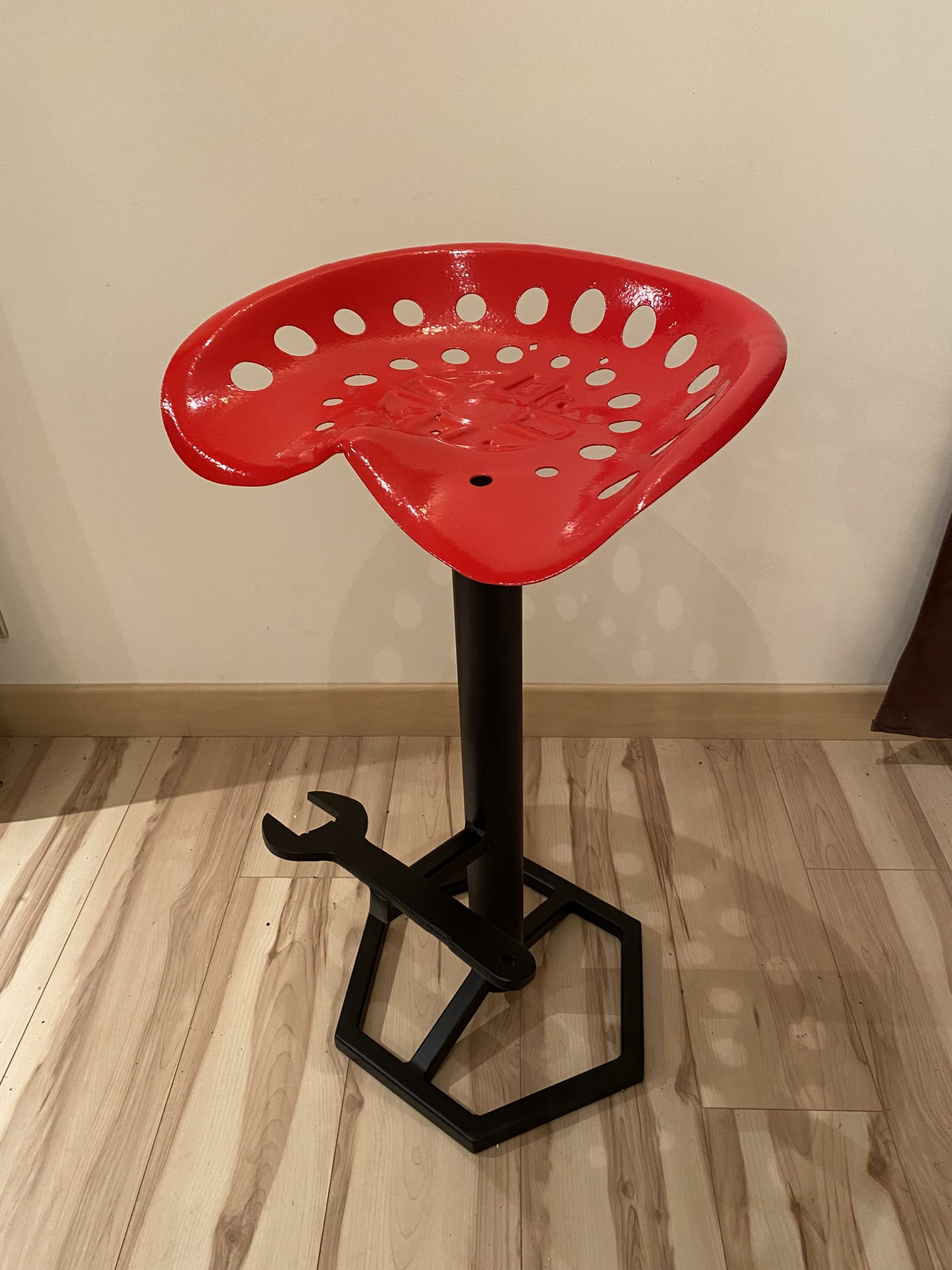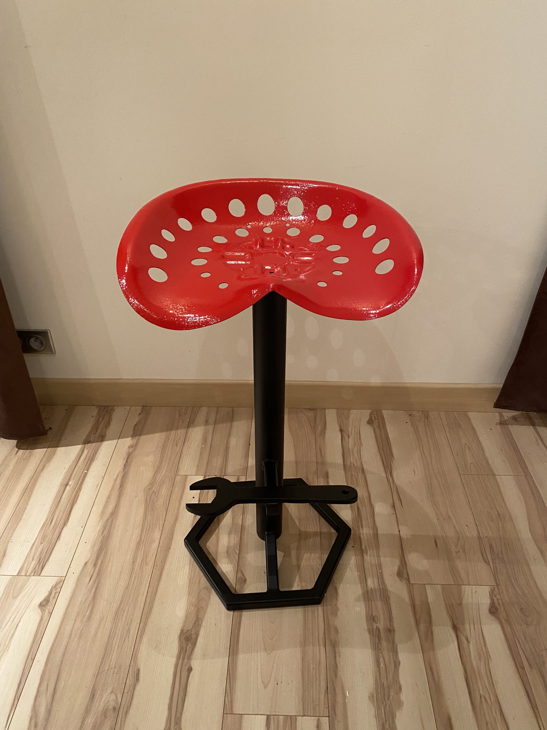 Apportez une touche d’authenticité et de caractère à votre intérieur avec ce tabouret unique réalisé à partir d’un véritable siège de faucheuse agricole.